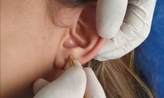 Consiste en la estimulación de puntos reflejos del organismo ubicados en el pabellón auricular, mediante el uso de electroestimulación, o estímulos presivos mecánicos con semillas o balines magnéticos. Se pueden regular puntos de alta tensión energética, disminuyendo así niveles de estrés, ansiedad y dolor.
